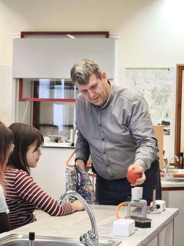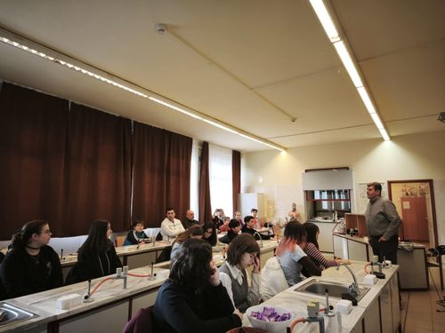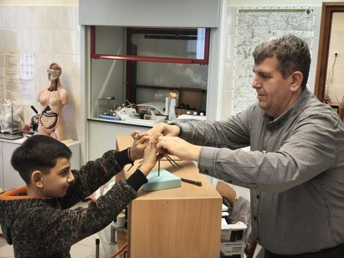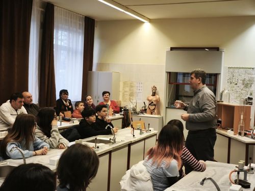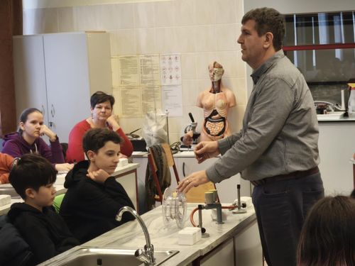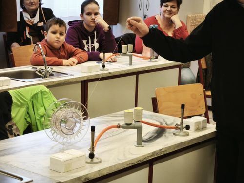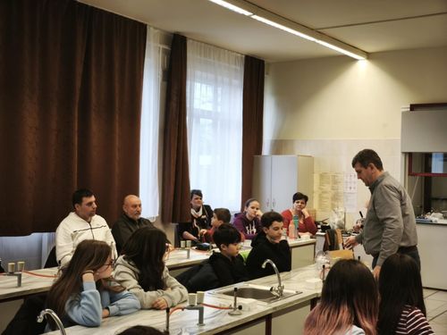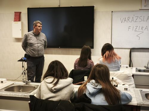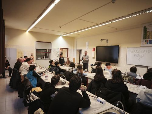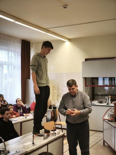 Az Arany Matiné hatodik foglalkozásán a fizika varázslatos világába utazhattak az érdeklődők. A helyi általános iskolákból érkező hatodik, hetedik és nyolcadik osztályosok zsúfolásig megtöltötték természettudományos laborunkat. Nagyon aktívan vettek részt a fizikai kísérletek kivitelezésében, szinte mindenkinek jutott személyre szabott feladat. Nagy Lehel matematika-fizika szakos oktatónk fizikai jelenségek egész sorozatát vonultatta fel a foglalkozáson. Hétköznapi eszközök, tárgyak újrahasznosításával készített kísérleti eszközökkel szemléltette a minket körülvevő világ fizikai törvényszerűségeit. A szabadesést gravitációs labdával, a tapadásos surlódást rizzsel, könyvvel vizsgálták, egyensúlyoztak szögekkel, magdeburgi félgömbökkel vizsgálták a légnyomást, készítettek alkoholhajtású rakétát, füstgéppel láthatóvá tették a fény útját, vákuumszivattyú segítségével vizsgálták a vákuumhatást és különböző hosszúságú csövekkel zenéltek. Ez a délután ismét bebizonyította, hogy a fizika nem csupán képletek gyűjteménye, hanem élményekkel teli, izgalmas felfedezés.