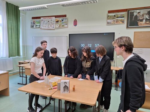 Az Arany Matiné alcíme – iskolánk nevének kezdőbetűiből kreatívan – Alkoss! Játssz! Gondolkodj! Vannak alkalmak, amikor az egyensúly felborul és eltolódik a hangsúly a játék vagy éppen a fejtörés felé, de ez alól a hétfőn és szerdán megrendezett alkalom kivétel volt. Két termet rendeztünk be szabadulószobának, a harmadik terem volt az alkotóműhely. Itt a szabadulószobára várakozók csapataik avatárját készítették el papírból, rajzeszközök, egyéb dekorelemek felhasználásával, illetve digitális feladatokkal készülhettek fel a szabadulószobára. A játék és gondolkodás a kulcsra zárt termekben történt. A kerettörténet szerint irodalmi hősöket – Nemecsek Ernőt, Bornemissza Gergelyt, Toldit, Harry Pottert és Kukorica Jancsit kellett megmenteni, kiszabadítani celláikból. Az izgalmas feladatok gyors gondolkodást, kreativitást, leleményességet, együttműködést és háttérismereteket igényeltek. Örömmel jelenthetjük, hogy egyik történelmi alak sem maradt a feledés cellájába, sikerült 25 percen belül kiszabadítani őket, tehát továbbra is ott lesznek tankönyveinkben, könyvespolcainkon.
